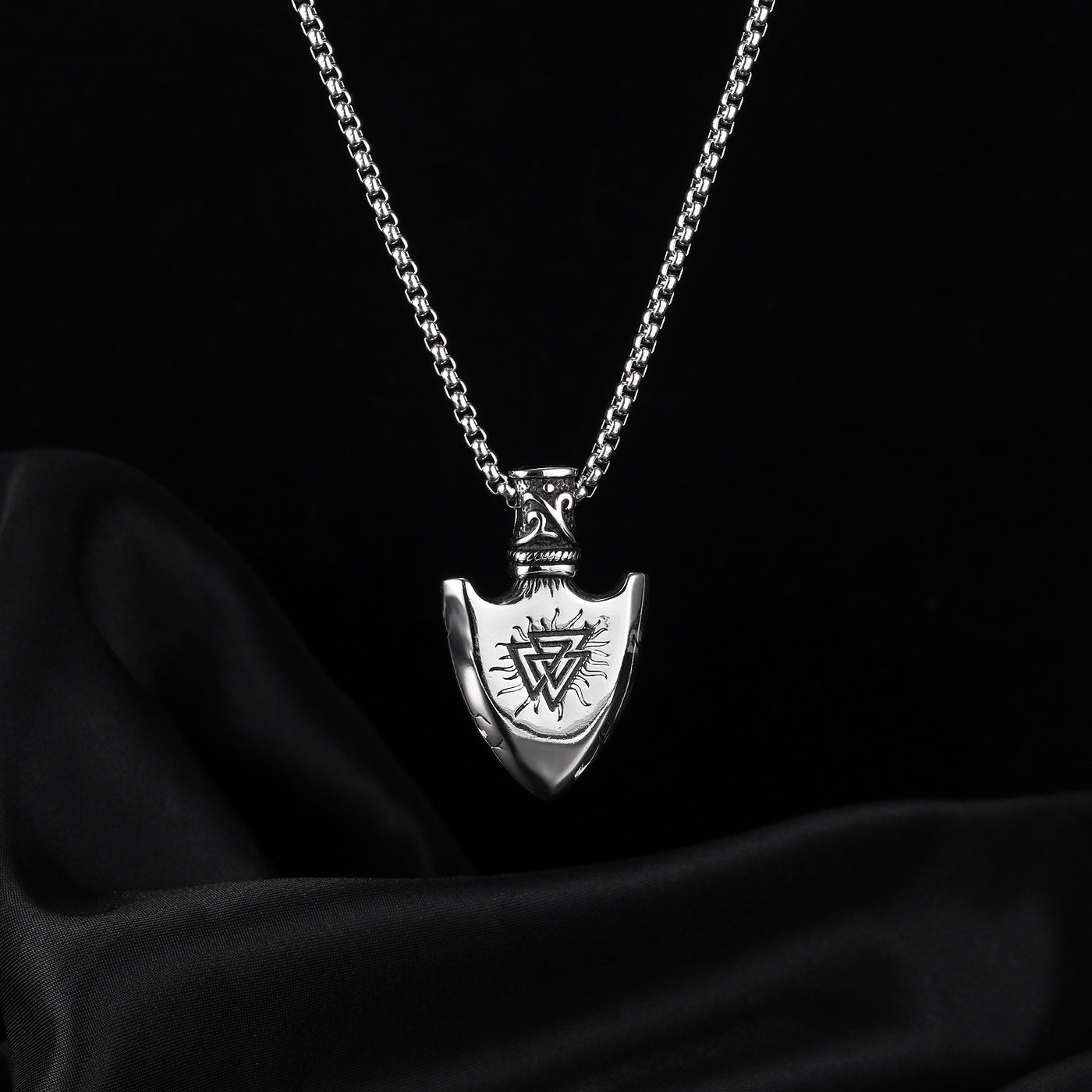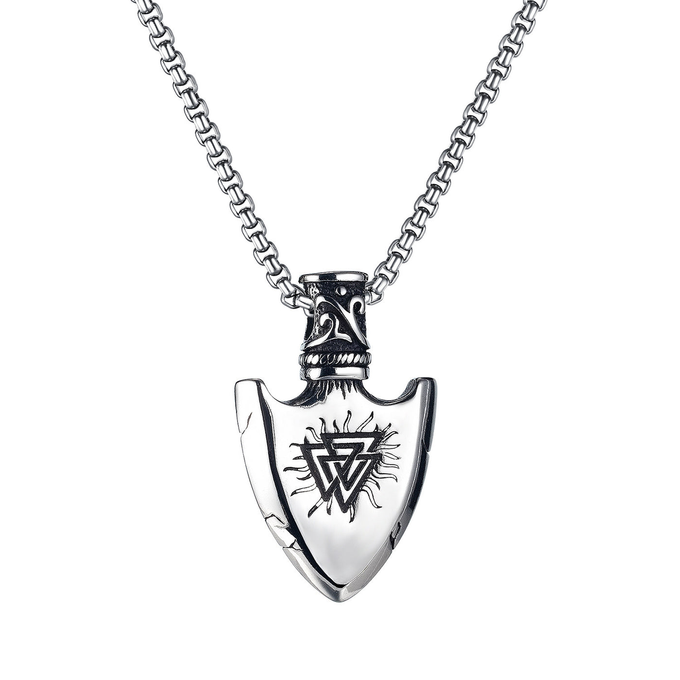 Retro Stainless Steel Shield Pendant for Men – Vintage European Style Necklace - silver gray